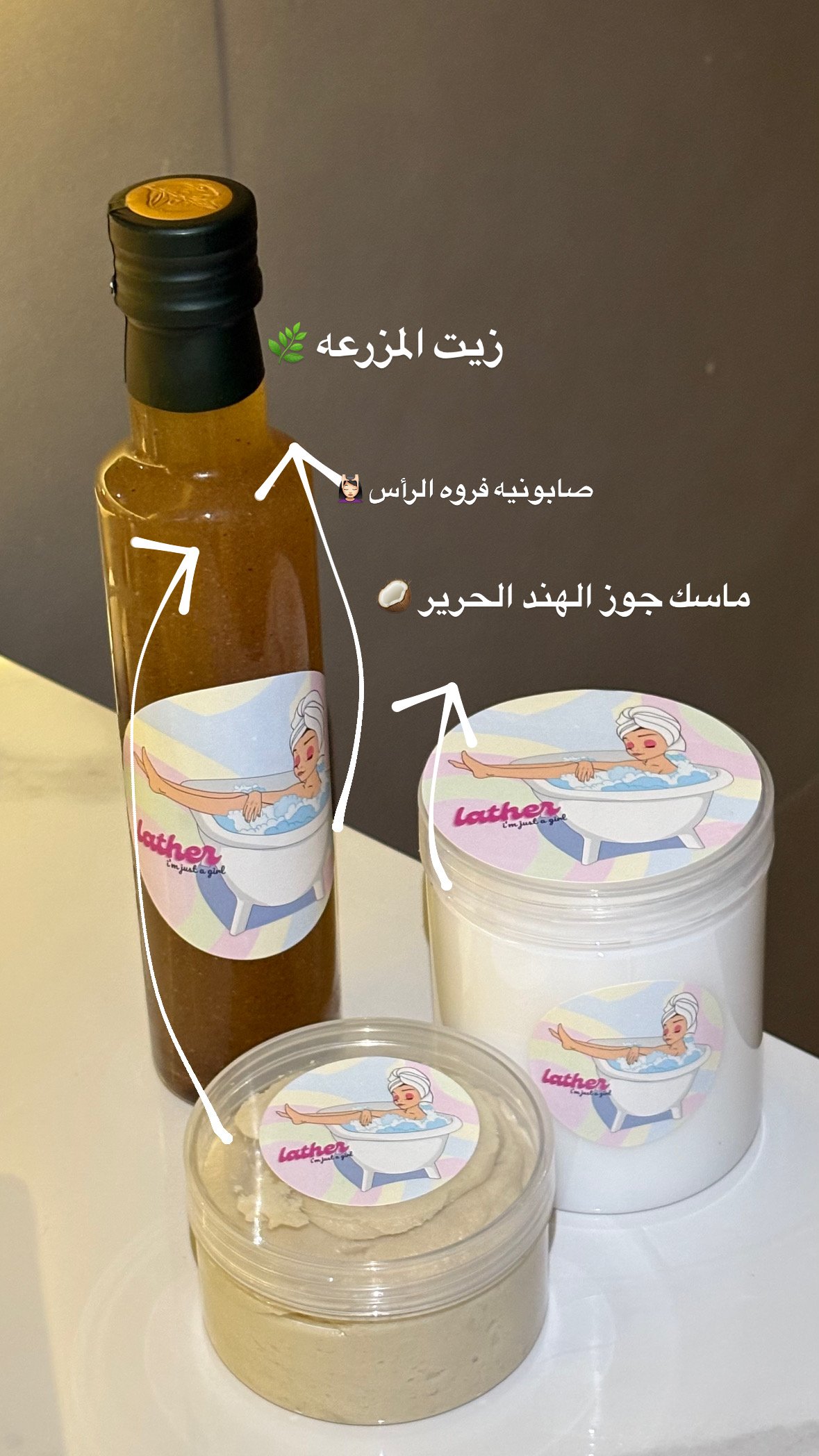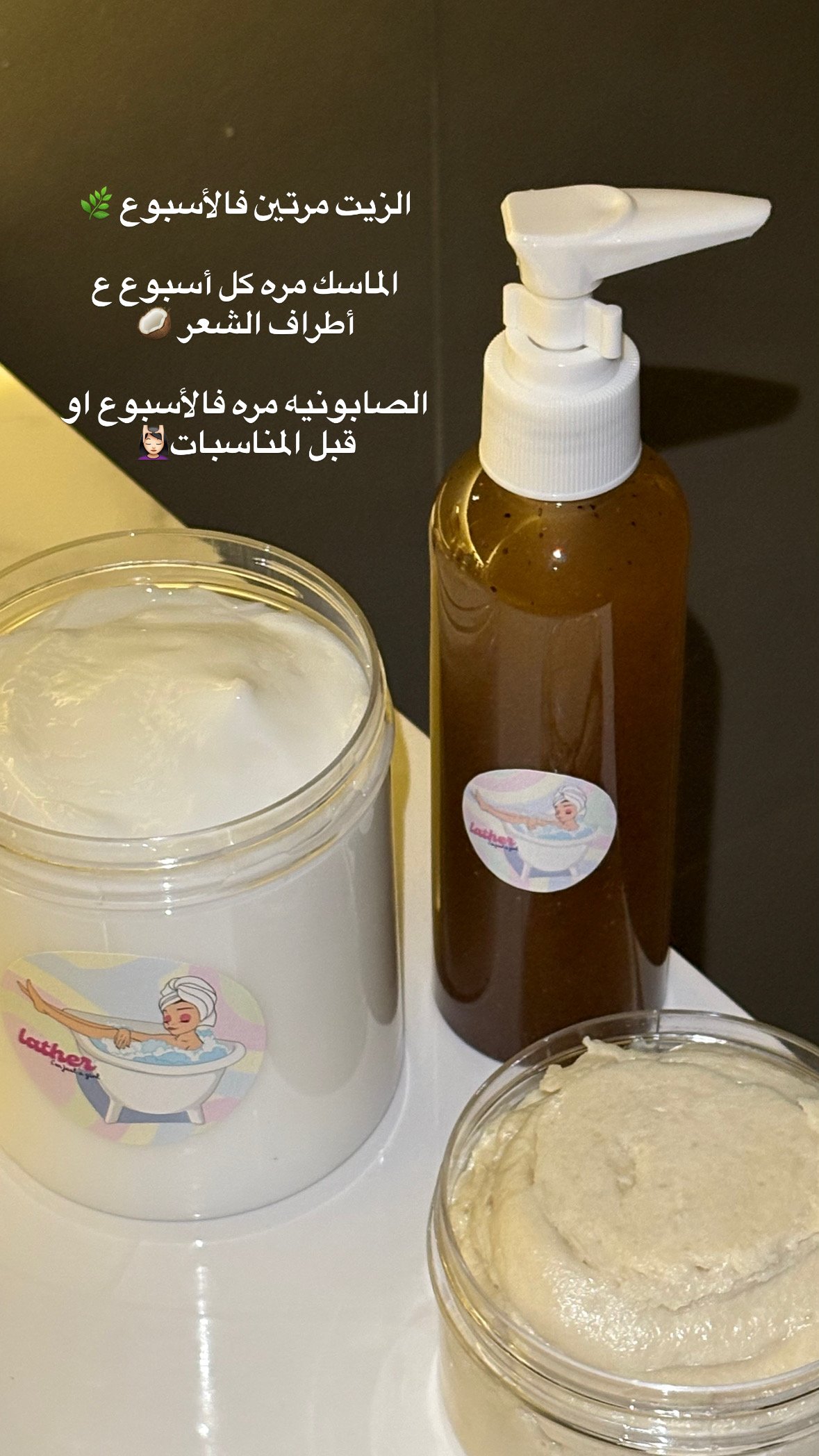 الصابونيه مرتين ف الأسبوع لفروه الشعر بللي شعرج و حطي فقط ع فروه الرأس و دلكي الشعر و اغسليه جيدا 🌱